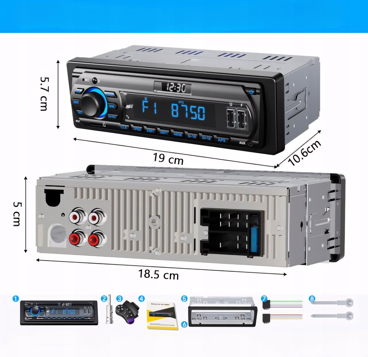 | Kod producenta: | Radio Samochodowe Bluetooth RDS 2x USB AUX |