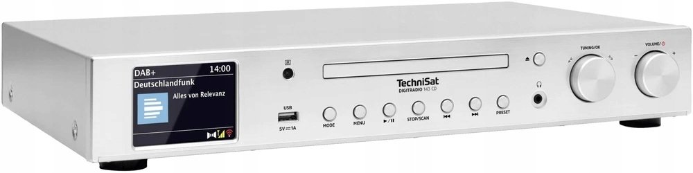 Technisat DigitRadio 143 (następca modelu Digitradio 140) to wysokiej jakości cyfrowy tuner UKF/FM oraz DAB+ i odtwarzacz płyt CD / MP3. Poprzez transmisję audio Bluetooth odtwarza utwory, słuchowiska radiowe, podcasty i wiele więcej ze smartfonu lub tabletu. Menu w języku polskim.