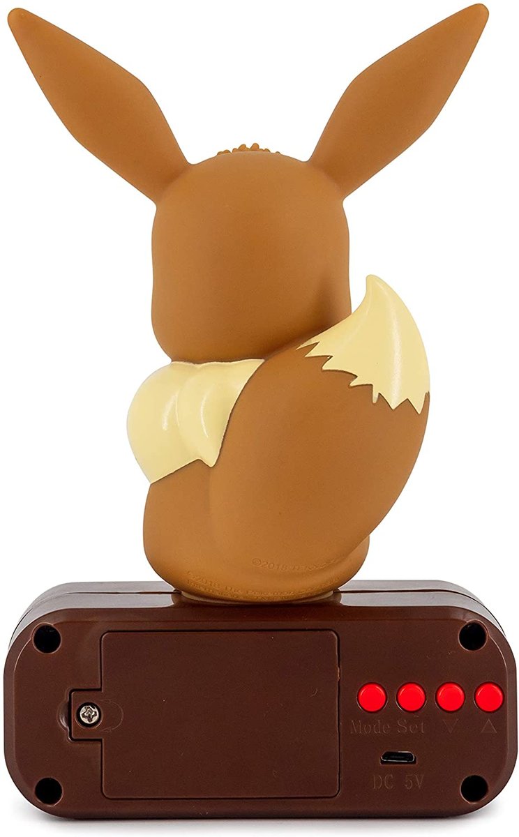 Radiobudzik z lampką LED z motywem Pokémon Eevee.
