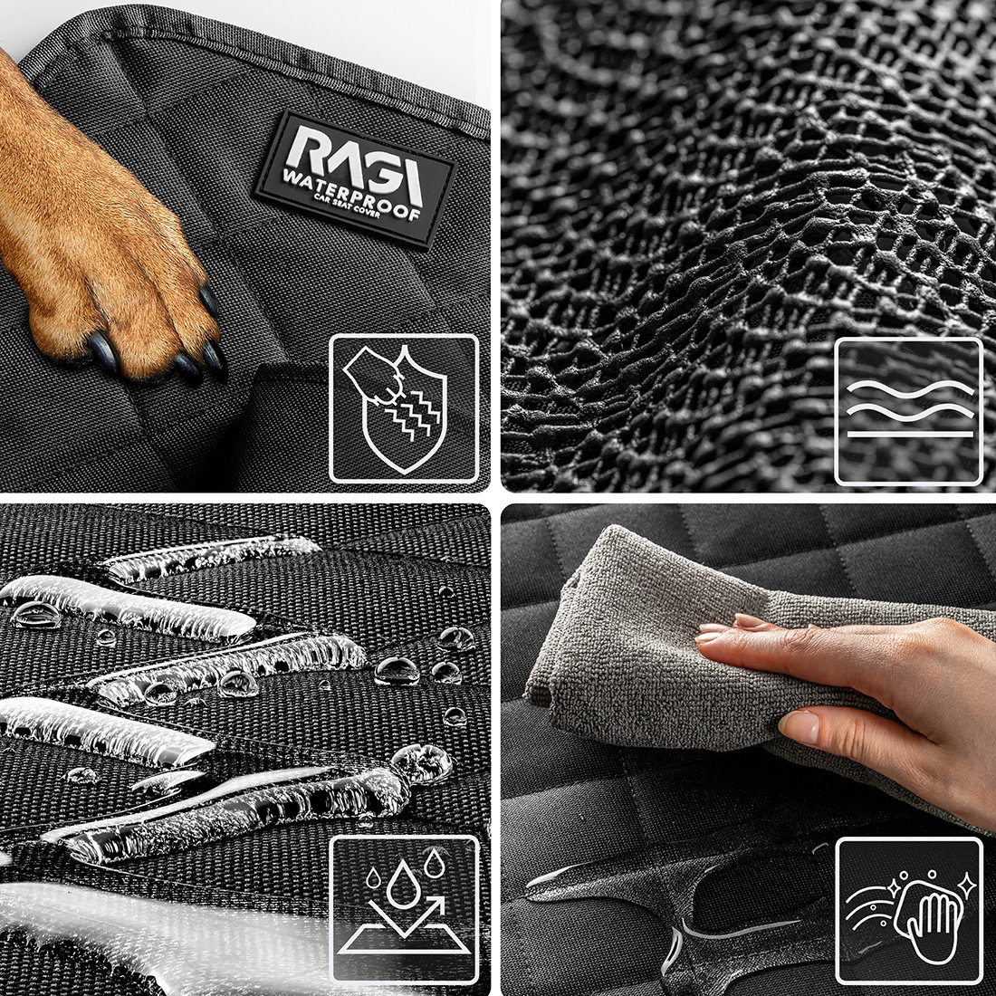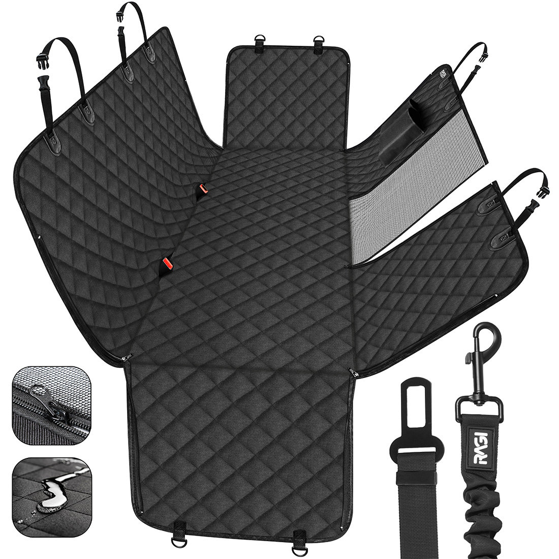 RAGI, Pokrowiec na tylne siedzenie samochodu dla psa + smycz z amortyzerem