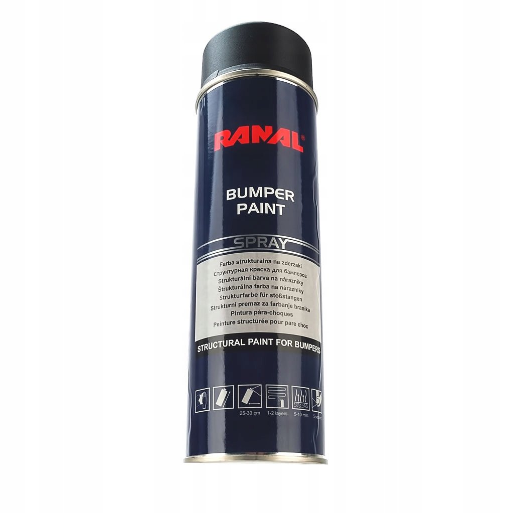 RANAL czarny lakier strukturalny do plastików 500mlSzybki i skuteczny patent na porysowane zderzaki.Bumper Paint firmy Ranal to środek do lakierowania zderzaków, listew, lusterek i innych elementów ...