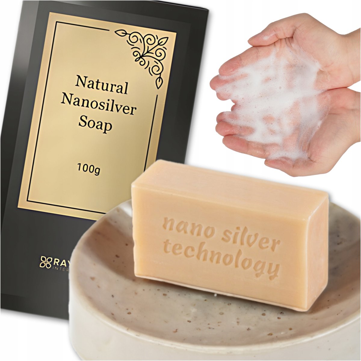 Raypath szare Mydło kosmetyczne w Kostce 100ml 100g antybakteryjne Kostka ✨ Doskonała ochrona przed bakteriami Mydło z nanosrebrem to wyjątkowy produkt o silnych właściwościach ...