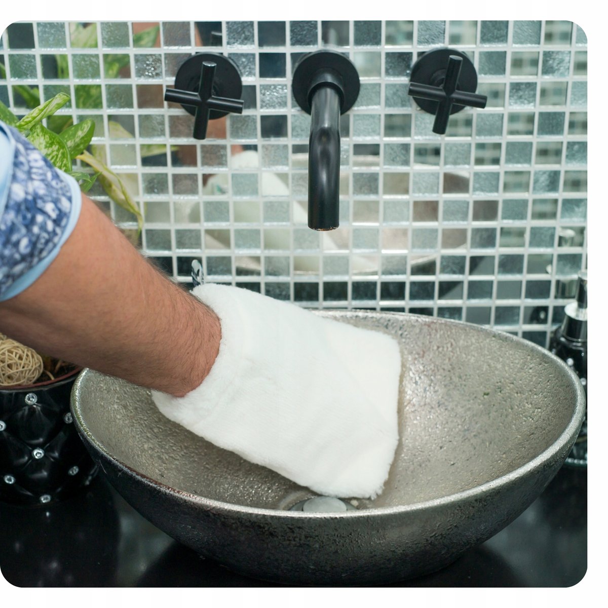✔️ Rękawica biała M – mycie na mokro sprzętów kuchennych i łazienkowych, szyb, tapicerki, karoserii, a nawet sierści zwierząt i liści roślin.