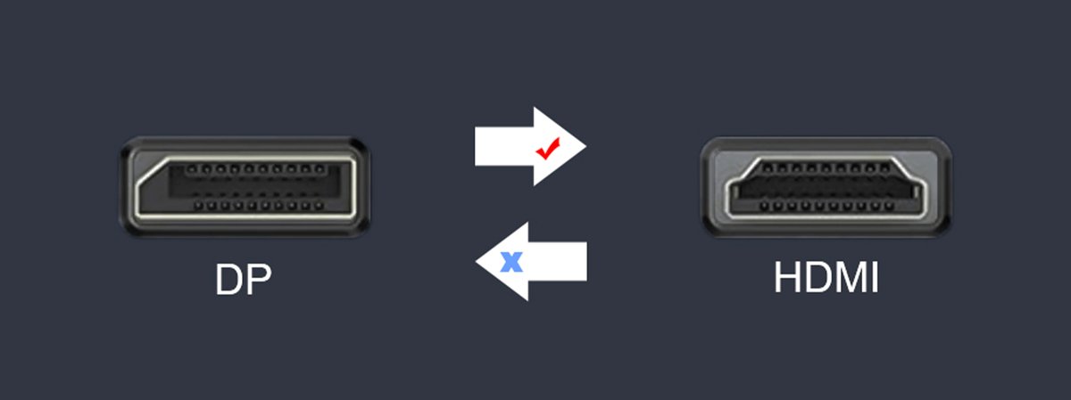 Uwaga: przewód jest jednokierunkowy. Pozwala na wysłanie sygnału ze złącza DisplayPort do portu HDMI.