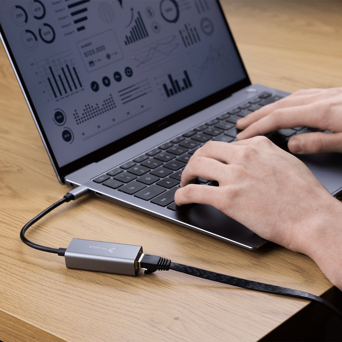 Bezprzewodowe połączenie z siecią jest bardzo wygodne, ponieważ nie ogranicza Cię długość internetowego kabla. Wi-Fi potrafi być jednak zawodne, a w nowych laptopach często brakuje portu RJ-45. Z kartą sieciową RYCRJ5 od Reagle to nie problem - dzięki niej podłączysz przewód Ethernet do portu USB-C.