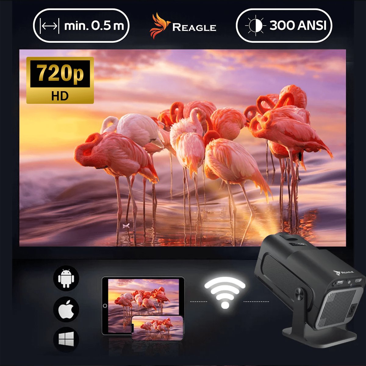 Właśnie zrecenzowałem REAGLE RZUTNIK MINI PROJEKTOR ANDROID TV 13 PRZENOŚNY LED 4K SMART 2GB RAM WIFI