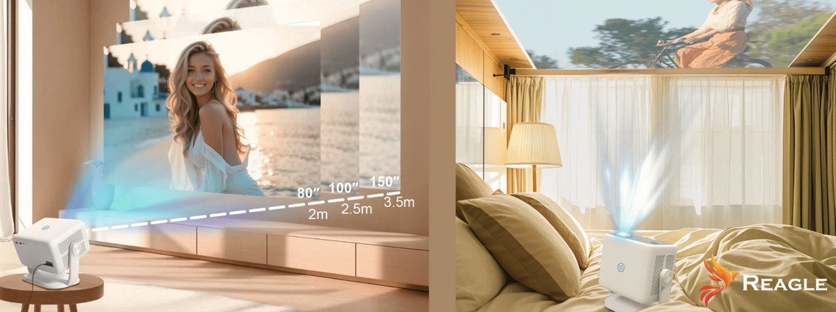 Właśnie zrecenzowałem REAGLE RZUTNIK PROJEKTOR LED PRZENOŚNY 650 ANSI 80W 4K FULL HD 150" ANDROID WIFI