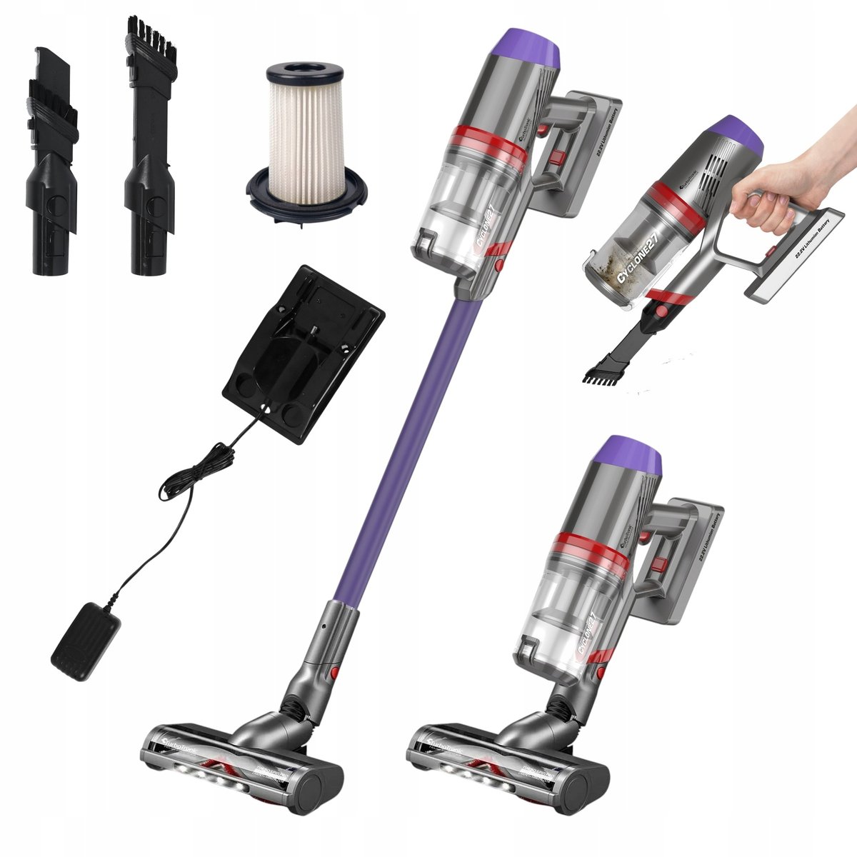 Ten przenośny i bezprzewodowy odkurzacz 2w1 od dzisiaj będzie Twoim najlepszym towarzyszem w codziennych porządkach. Mocny akumulator, który pozwoli na pracę do 32 min oraz moc ssania 21 Kpa w połączeniu z turboszczotką, ruchem cyklonowym i mobilnością odkurzacza pozwoli bez trudu posprzątać cały dom.