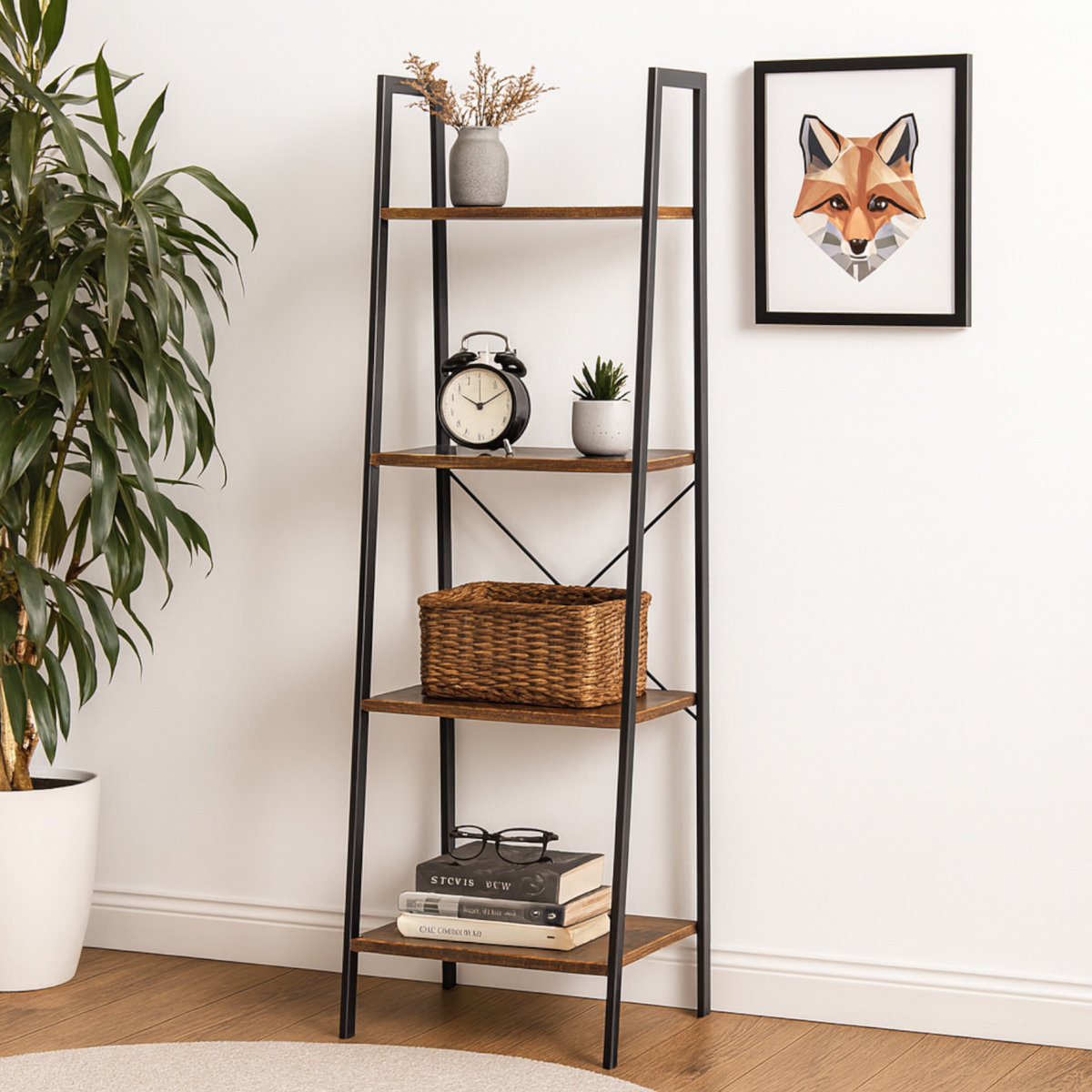 4 solidne półki zapewniają dostatecznie dużo miejsca na książki, rośliny, ramki do zdjęć, segregatory czy elementy ozdobne. Metalowe wsporniki w kształci litery “X” zwiększają wytrzymałość. Regulowane nóżki ułatwią wypoziomowanie mebla na nierównej podłodze.