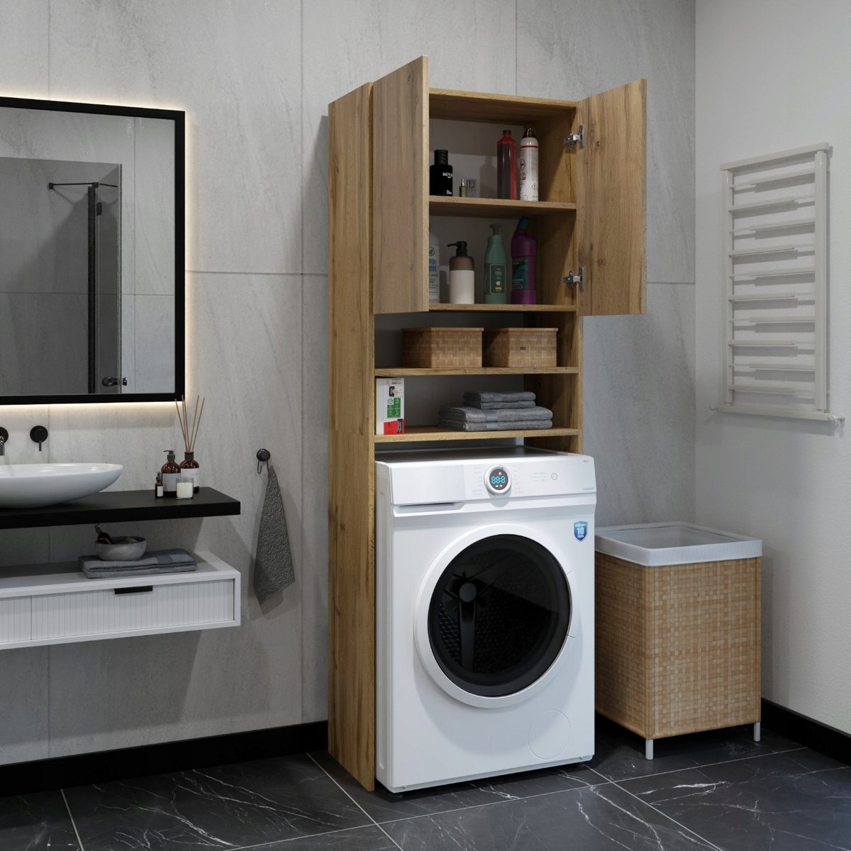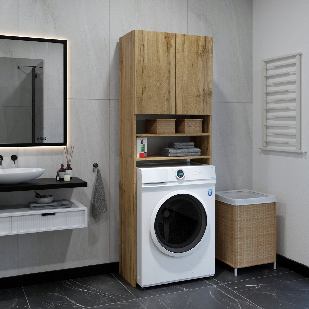 ✅ESTETYKA: Praktyczny design nadstawki nad pralkę dodaje funkcjonalności do przestrzeni pralni, jednocześnie nie przytłaczając jej swoją obecnością.