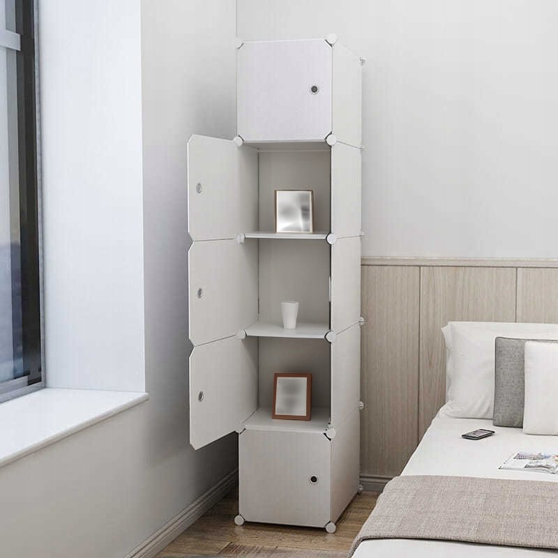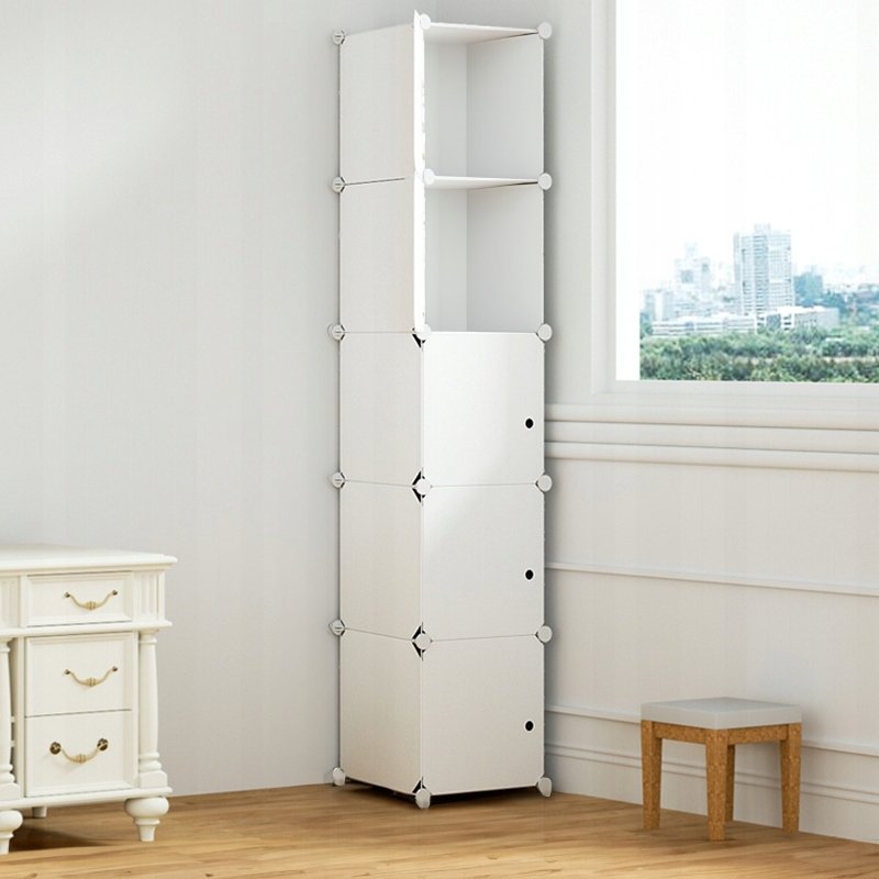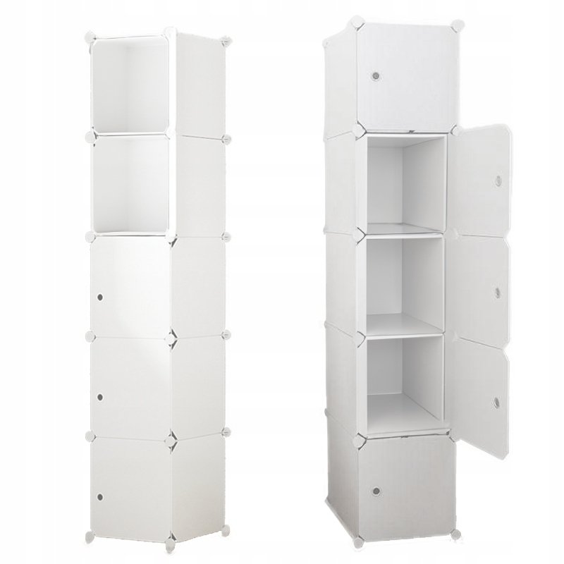 Biała szafa modułowa z 5 półkami jest wszechstronnym meblem, który sprawdzi się w różnych pomieszczeniach: