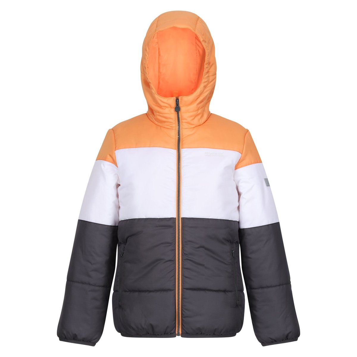 Materiał: 100% poliester. Wypełnienie: Heavyweight. Projekt: kontrast, logo. Technologia tkaniny: wykończenie DWR, wysoka gramatura, izolacja, Thermo-Guard, odporność na warunki atmosferyczne. Dekolt: z kapturem. Wewnętrzna osłona zamka błyskawicznego, wyściełana. Typ rękawa: Długi rękaw. Mankiet: elastyczne wiązanie. Cechy kaptura: elastyczny, wyhodowany na kapturze. Kieszenie: 2 kieszenie boczne, zamek błyskawiczny. Zapięcie: zamek na całej długości. Obszycie: elastyczne wiązanie. Proszę zwrócić uwagę: Etykieta z nadrukowanym imieniem i nazwiskiem do wieku 8 lat.