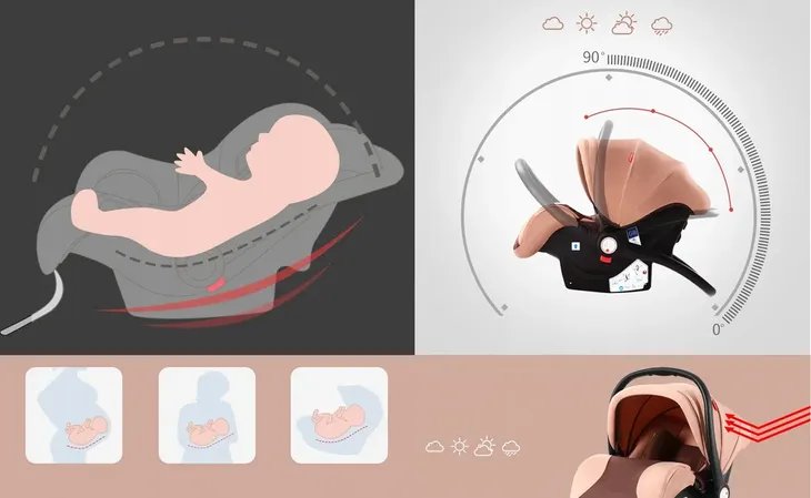 ✔️ Regulowany kąt nachylenia gondoli – pełna kontrola nad pozycją dziecka.