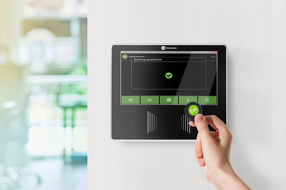 Bezstykowy o najwyższej niezawodności: Dzięki terminalowi rejestracji czasu od Timemaster Ty i Twoi pracownicy rezerwują swoje godziny bezdotykowe i bez zużycia. Dzięki RFID lub Transsponder NFC jest niezawodnie rozpoznawany każdą osobę w firmie, bez konieczności dotykania pola dotykowego itp.