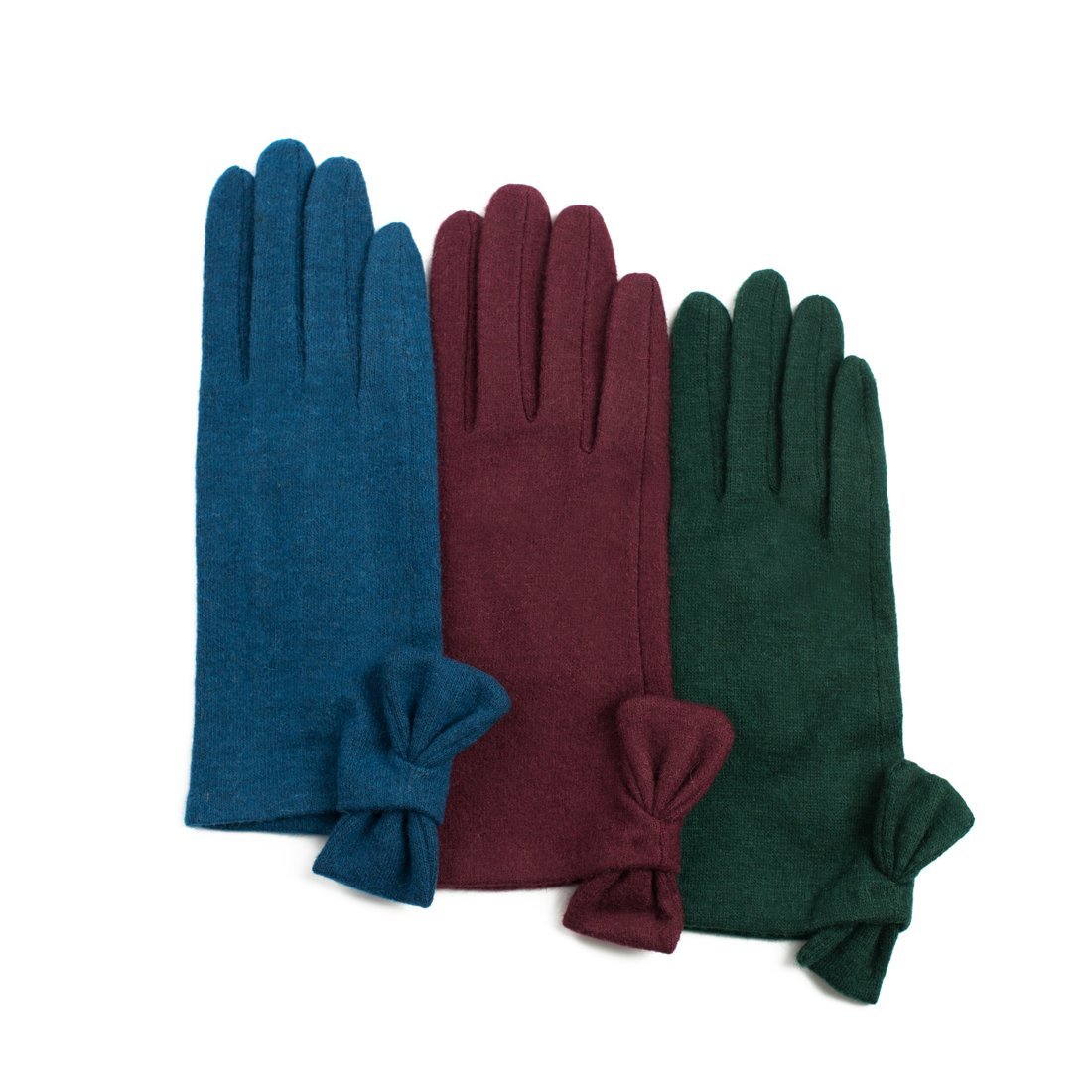 Wełniane damskie rękawiczki z kokardą. Delikatnie rozciągliwe. Można w nich korzystać z telefonu. Przeznaczone dla fanek zarówno elegancji, jak i casualu. Produkt nieocieplony.