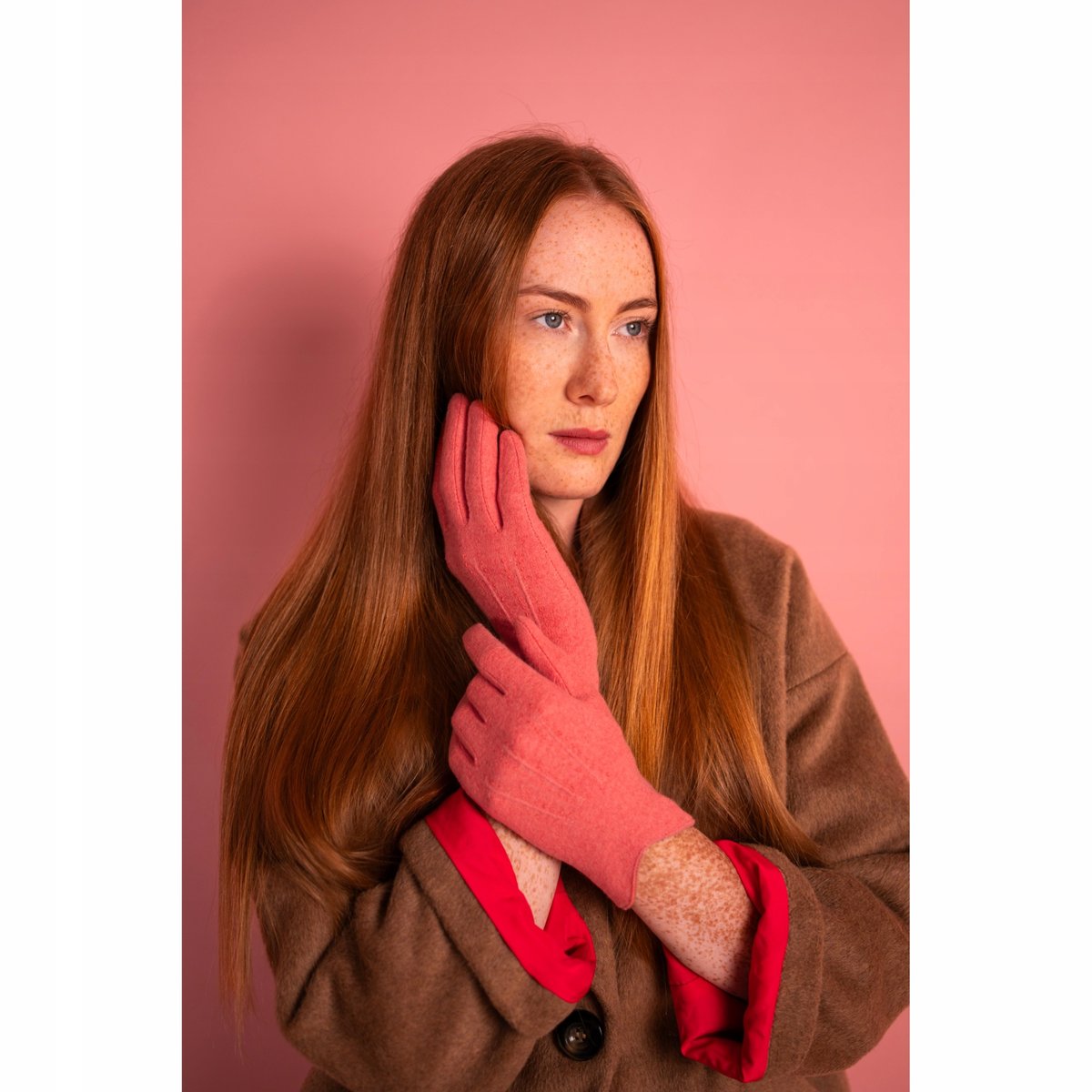 Gustowne, wełniane rękawiczki w żywych kolorach. Ozdobione przeszyciami i wykończone lamówką z ekoskórki Produkt nieocieplony. Eleganckie i stylowe, idealne na pory przejściowe. Będa pasowały zarówno do eleganckich, jak i codziennych stylizacji.
