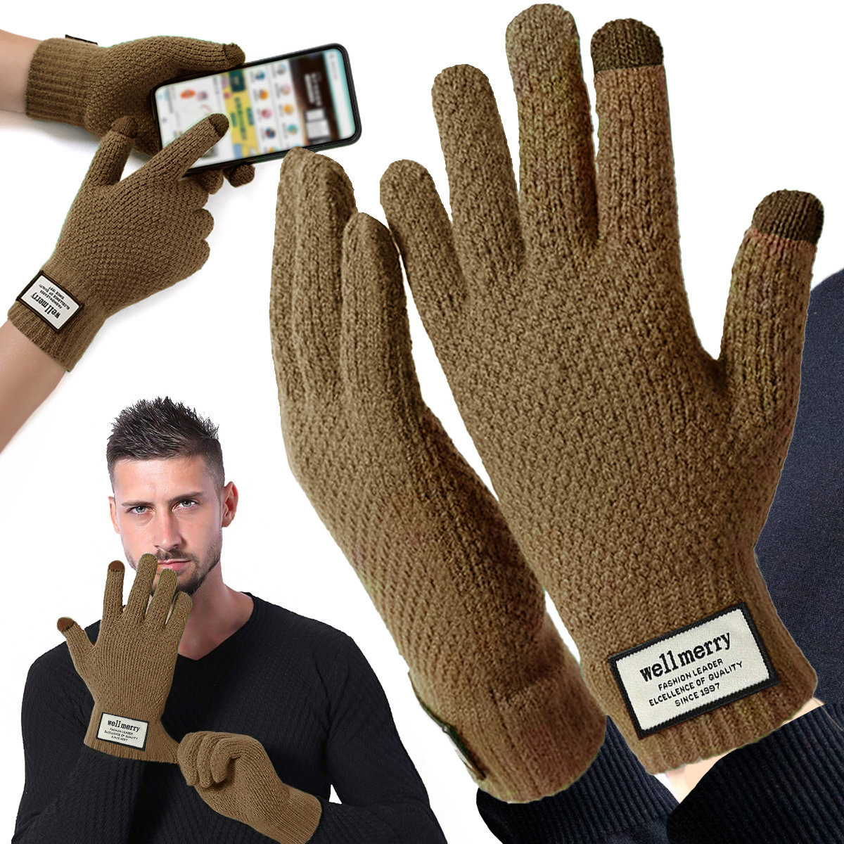| Nazwa: | Rękawiczki Męskie Zimowe Dotykowe Do Smartfonu Ciepłe Brązowe Rękawice |