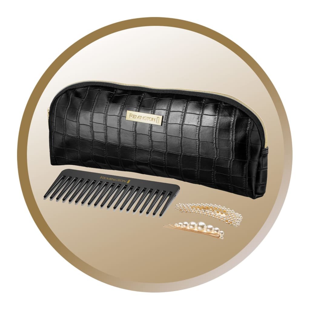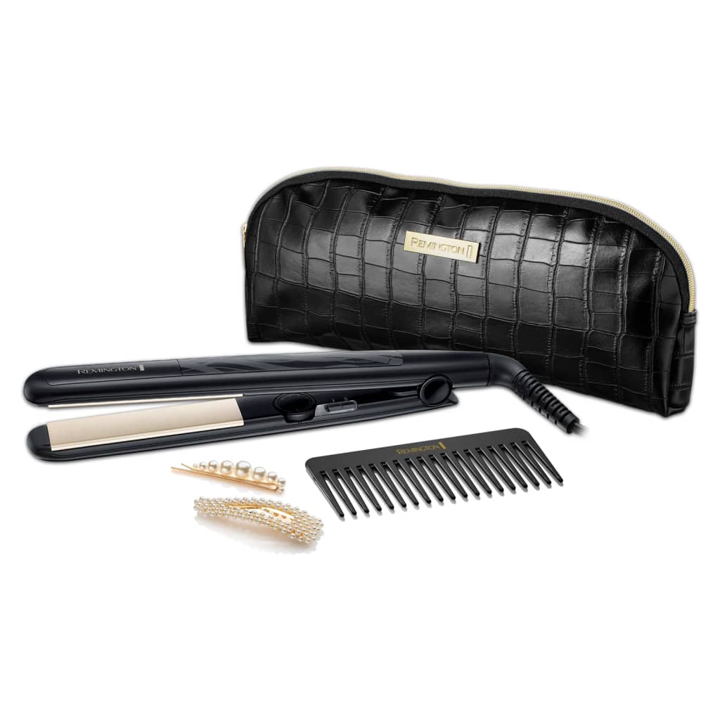 Podaruj bliskiej osobie ten niesamowity zestaw podarunkowy Style Edition z prostownicą do włosów marki REMINGTON, zawierający również eleganckie etui, grzebień do stylizacji i 2 modne spinki do włosów. Teraz każdy może ułożyć gładką, błyszczącą i bardziej dynamiczną fryzurę.