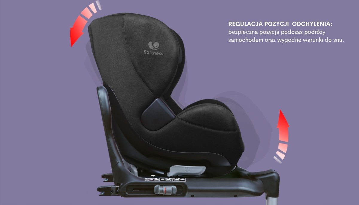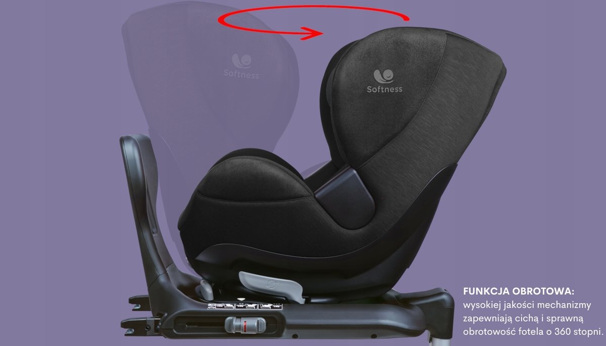• Obrotowy : 90° dla łatwej instalacji dziecka i 180° dla zmiany kierunku fotelika