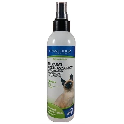 FRANCODEX Spray przeciwko drapaniu przez koty. Produkt na bazie olejków eterycznych skutecznie zniechęci zwierzę do drapania mebli czy dywanów.