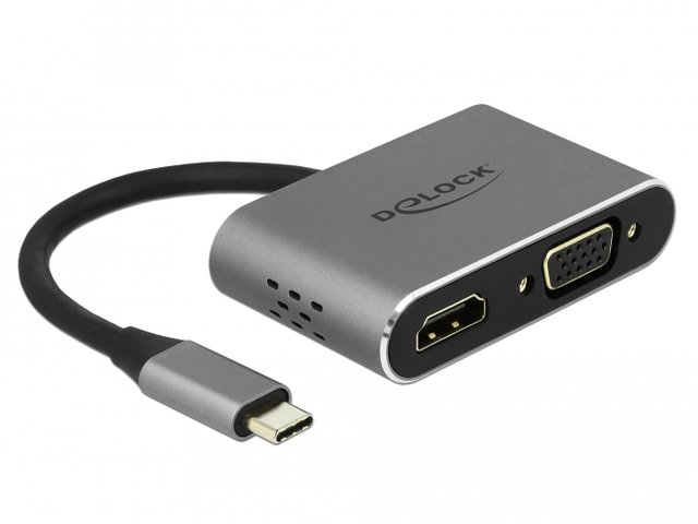Opis Adapter Delock nadaje się do podłączania monitora HDMI albo VGA do komputera z wyjściem USB-C™ i obsługą wielomodowego DisplayPort. Dwa monitory mogą być obsługiwane jednocześnie na wyjściu.