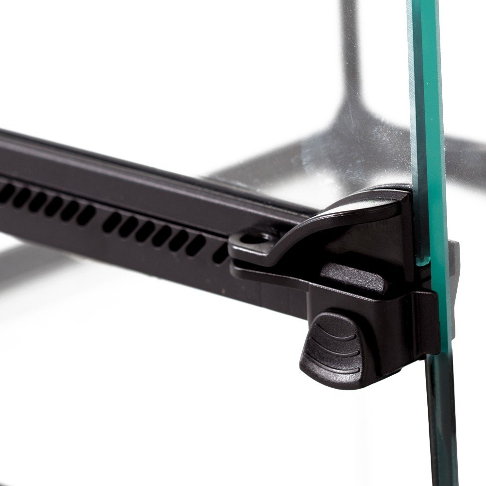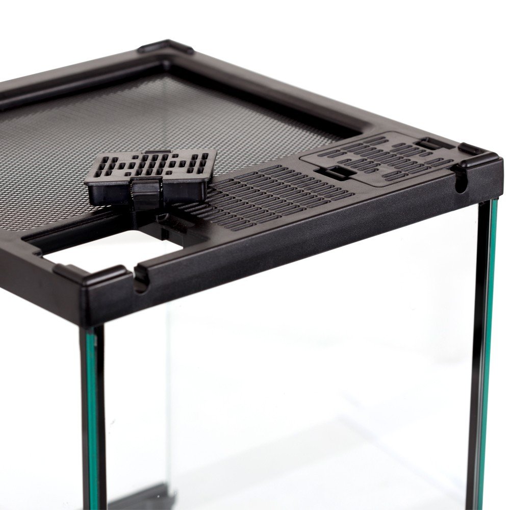 Górną pokrywę terrarium stanowi odporna na wysokie temperatury i rdzewienie stalowa siatka. Siatka zapewnia doskonałą wymianę gazową dodatkowo zabezpiecza pupila przed poparzeniem się w przypadku kontaktu z lampą grzewczą.