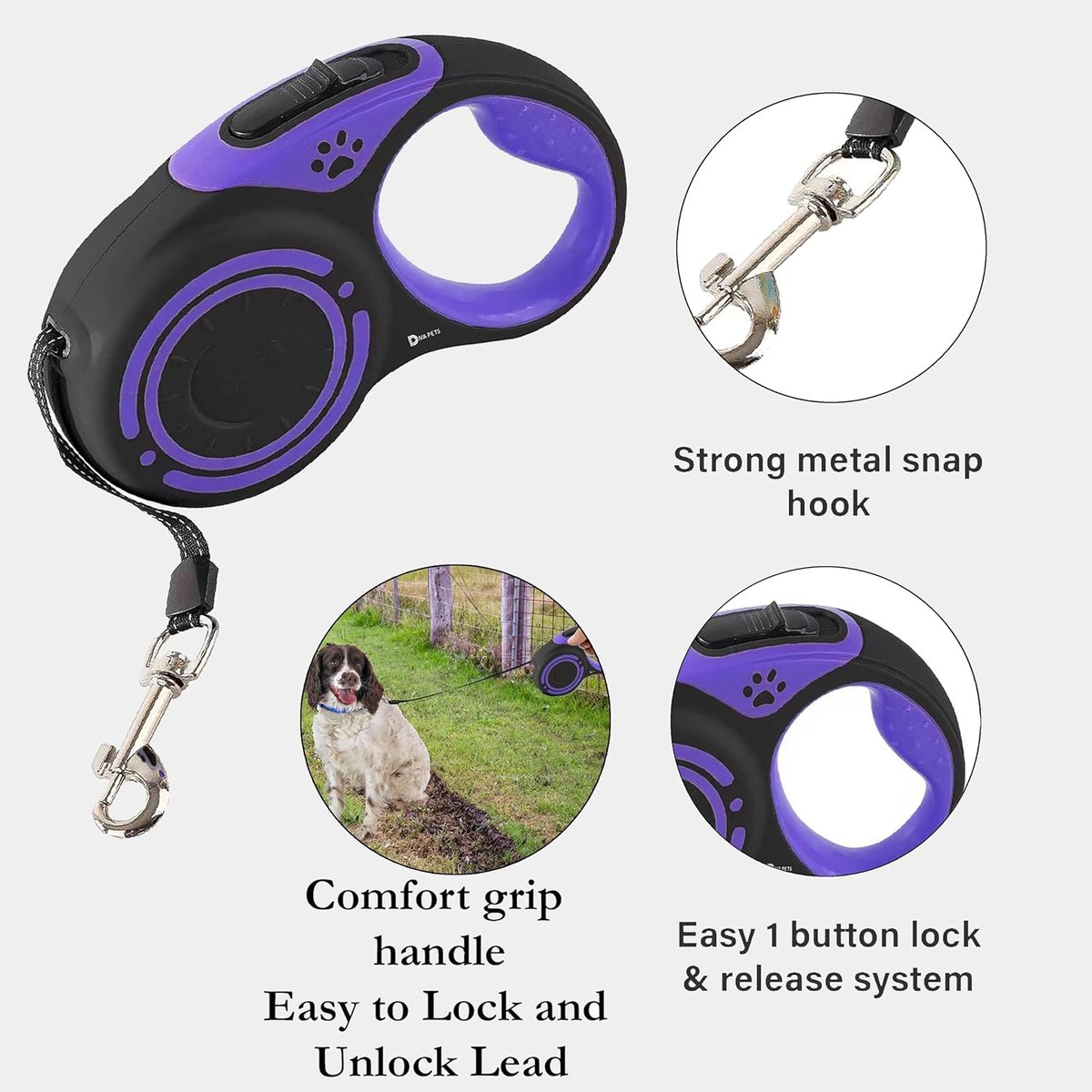 | Nazwa: | Retractable Dog Lead - Leash with Swivel Hook for Safe and Stylish Walks - Ideal for Daily Walking (Black/Purple, 3M) |