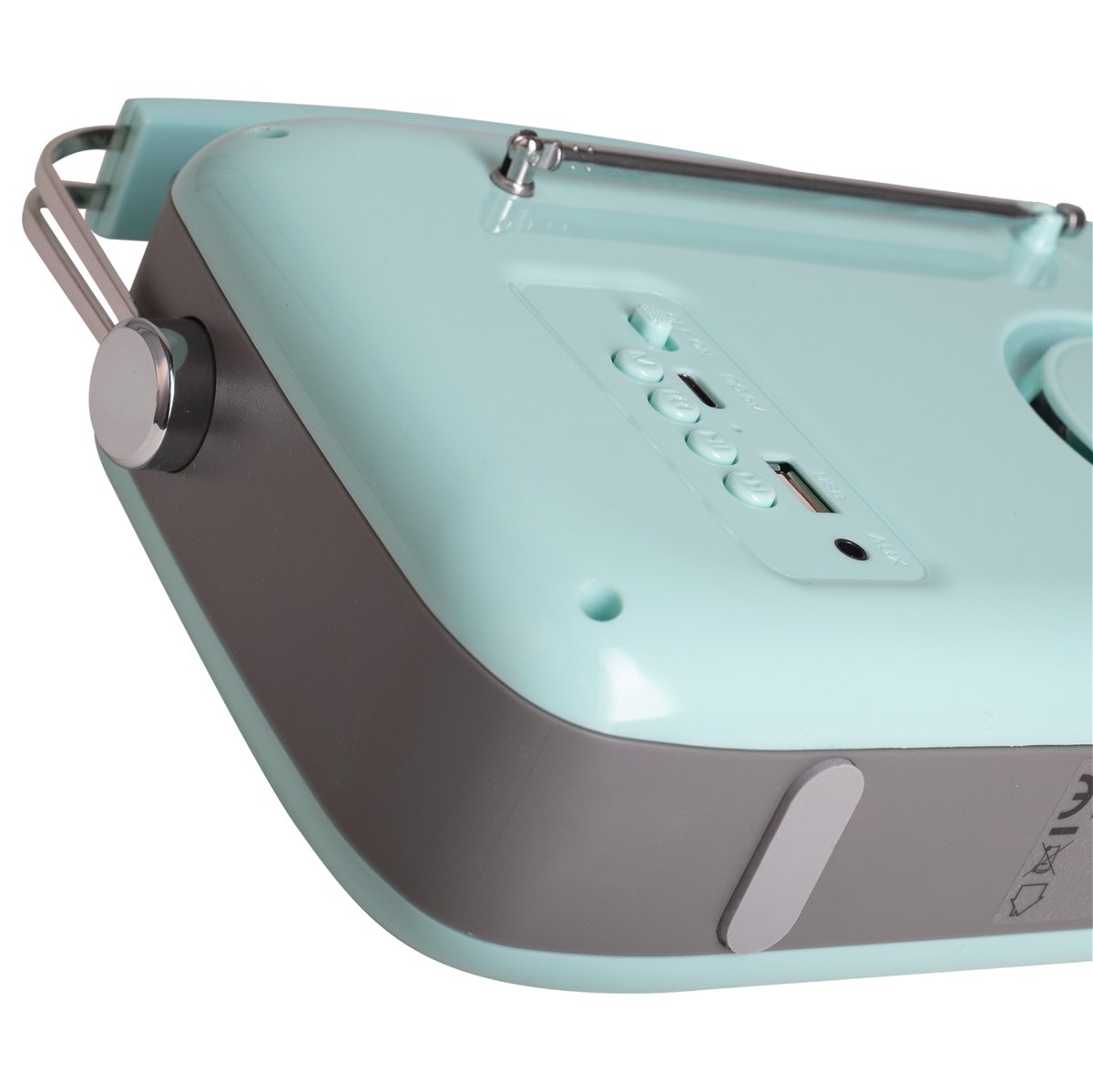 Czy istnieje coś piękniejszego niż połączenie pasji do gotowania i ulubionej muzyki? Radio w pastelowym kolorze z wykończeniem w połysku z głośnikiem Bluetooth to nieodłączny kompan każdego domowego kucharza! Kompaktowych rozmiarów radio zaprojektowane w stylu retro idealnie wkomponuje się w przestrzeń Twojej kuchni. Dzięki funkcji Bluetooth podczas gotowania możesz słuchać na nim swoich ulubionych piosenek, podcastów lub stacji radiowych. Z tyłu głośnika znajduje się wejście audio, do którego można podłączyć urządzenia przenośne, takie jak telefon lub tablet. Przenośne radio z wbudowaną baterią ładuje się za pomocą dołączonego do zestawu przewodu USB-C.