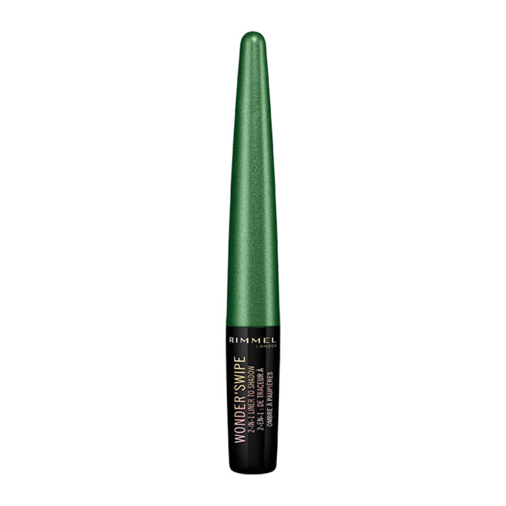 Teatralny, trwały efekt dzięki eyelinerowi i cieniowi do powiek 2 w 1 Wonder'swipe w odcieniu Kha-Ching od Rimmel! Nowa odsłona makijażu oka dzięki przełomowej formule 2 w 1. Zmień odważny metaliczny eyeliner w połyskujący cień do powiek zaledwie jednym pociągnięciem palca. Ten łatwy do rozcierania eyeliner i cień w płynie to wielozadaniowe cudo. Wonder’Swipe jest dostępny w szerokiej gamie odcieni o silnej pigmentacji – od efektownych, metalizowanych, przez jasne i połyskliwe po soczyście ciemne. Nakładaj je i łącz, ilekroć chcesz, aby uzyskać niepowtarzalny, zjawiskowy efekt utrzymujący się nawet przez 10 godzin! Nakładaj kolorowy kosmetyk na powiekę jak zwykły eyeliner w płynie. Aby uzyskać połyskliwy cień, rozprowadź go pędzelkiem lub palcem, dopóki jest wilgotny. Wykonaj odważny i modny makijaż oczu za pomocą jednego produktu. Magia dzieje się na Twoich oczach!