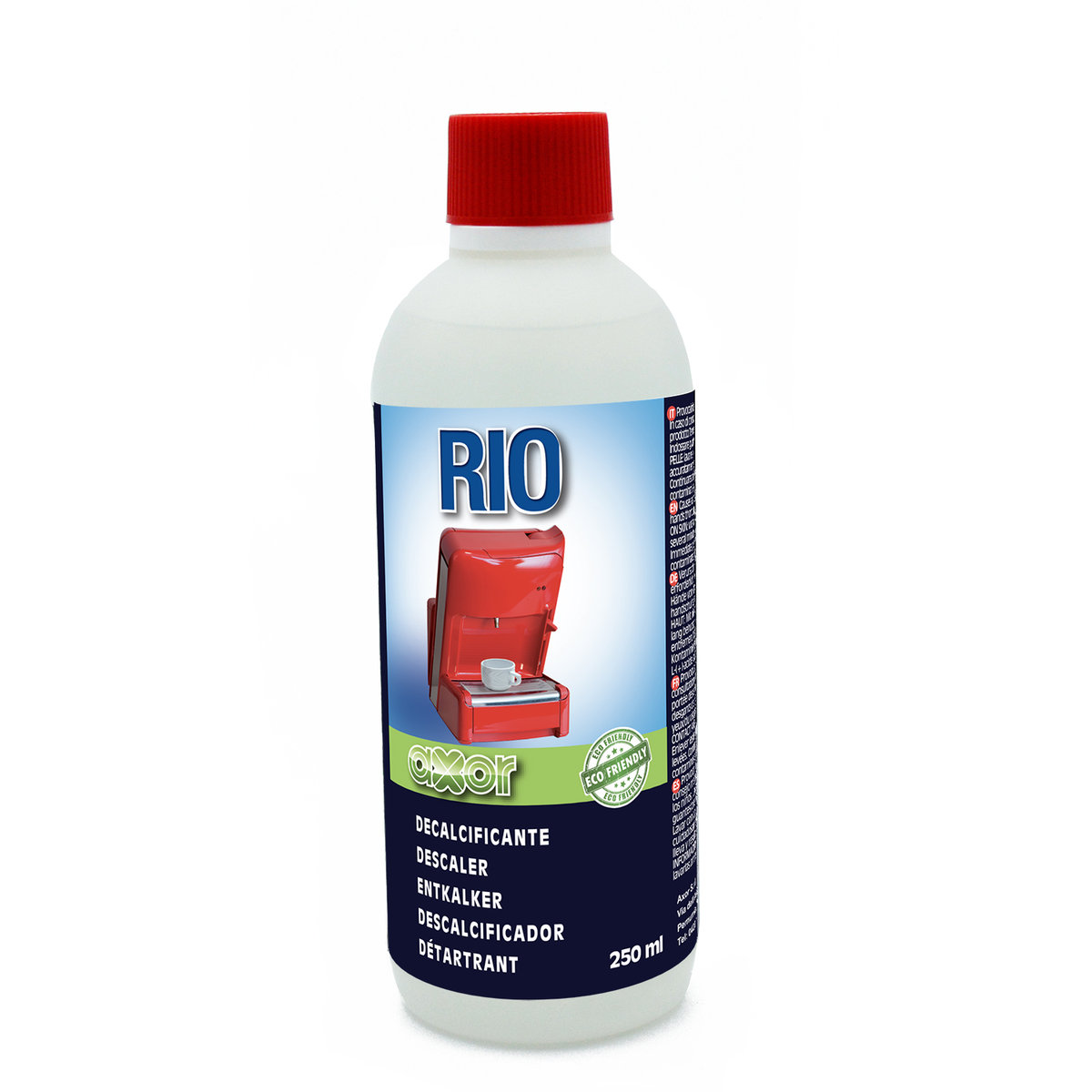 RIO to płyn odkamieniający przeznaczony do szybkiego i skutecznego usuwania kamienia z ekspresu do kawy, bez pozostawiania nieprzyjemnych zapachów i osadów. Woda z kranu zawiera sole wapnia i magnezu, które ze względu na wysoką temperaturę tworzą nieuniknione osady wapienne, zatykając rury i szybko powodując awarię, a tym samym zablokowanie ekspresu.