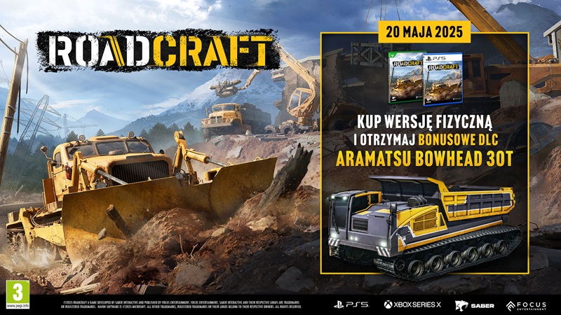 Dodatek do edycji fizycznej: Kup grę RoadCraft na nośniku fizycznym i otrzymaj pojazd Aramatsu Bowhead 30T, potężny samochód ciężarowy do pracy w wymagających warunkach z bazą obracaną o 360 stopni,