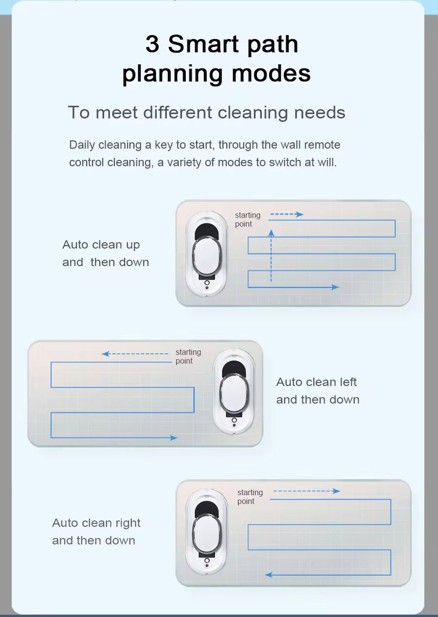 - Linka zabezpieczająca zapobiega przypadkowemu upadkowi Wbudowana bateria litowa zapewnia do 20/30 minut pracy, utrzymując moc ssania robota w celu uniknięcia jego upadku.