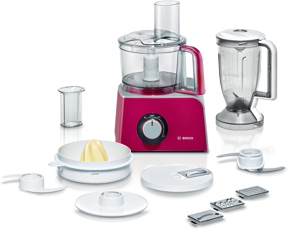 | Wyposażenie: | kielich blendera, wyciskarka do cytrusów, końcówka do zagniatania ciasta, tarcza emulgacyjna, ostrze tnące, tarcze tnące |