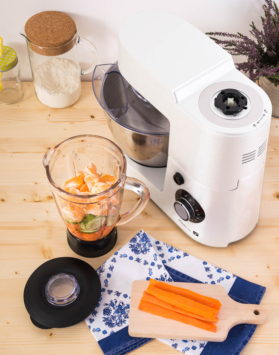 Robot kuchenny nie tylko automatyzuje pracę w kuchni, ale także zastępuje wiele dedykowanych do danych czynności urządzeń. Dzięki temu oszczędzamy zarówno czas, pieniądze, jak i miejsce w szafkach. G21 Promesso dysponuje mocą 1500 W oraz misą o pojemności 5,5 l. Funkcje takie jak wyrabianie ciasta, funkcja miksera, mielenie mięsa pomogą w sprawnym i efektywnym przygotowaniu wielu potraw.