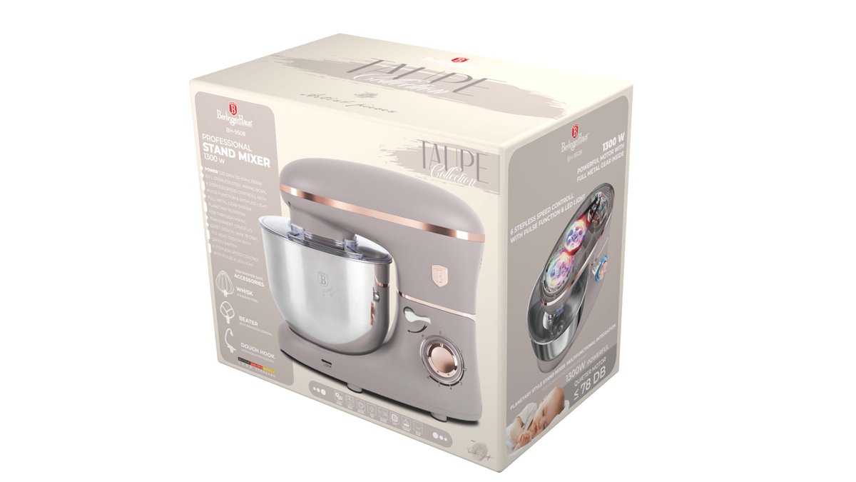 Robot kuchenny planetarny 1300W Taupe Collection BerlingerHaus BH-9508 JAKOŚĆ I ELEGANCJA Wykonany z najwyższą starannością. Stabilność i bezpieczną pracę zapewniają nóżki antypoślizgowe. Kompaktowy