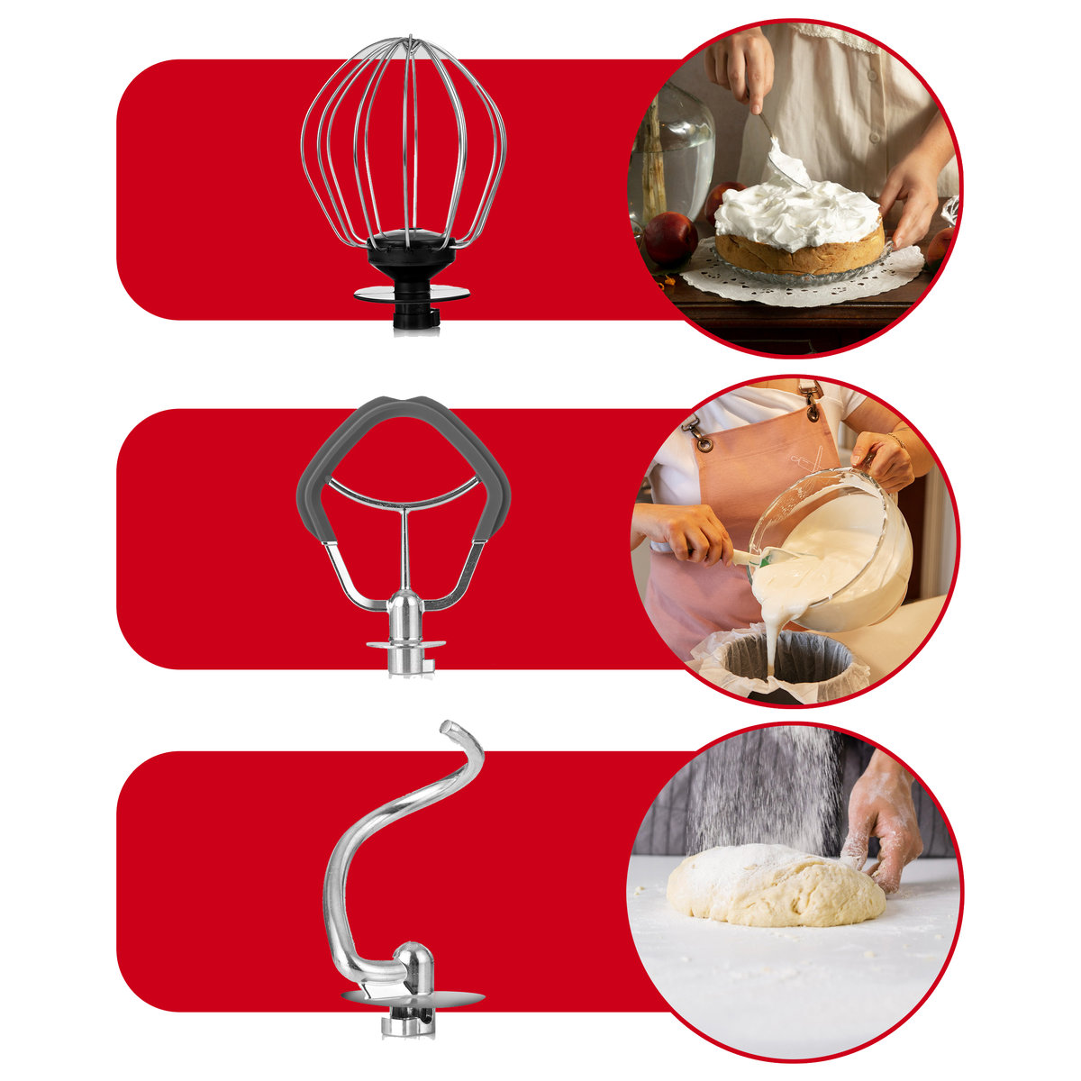 Osiągniesz perfekcyjne rezultaty dzięki profesjonalnym mieszadłom. Zestaw trzech końcówek ułatwia pracę z różnorodnymi składnikami, zapewniając idealną konsystencję za każdym razem.
