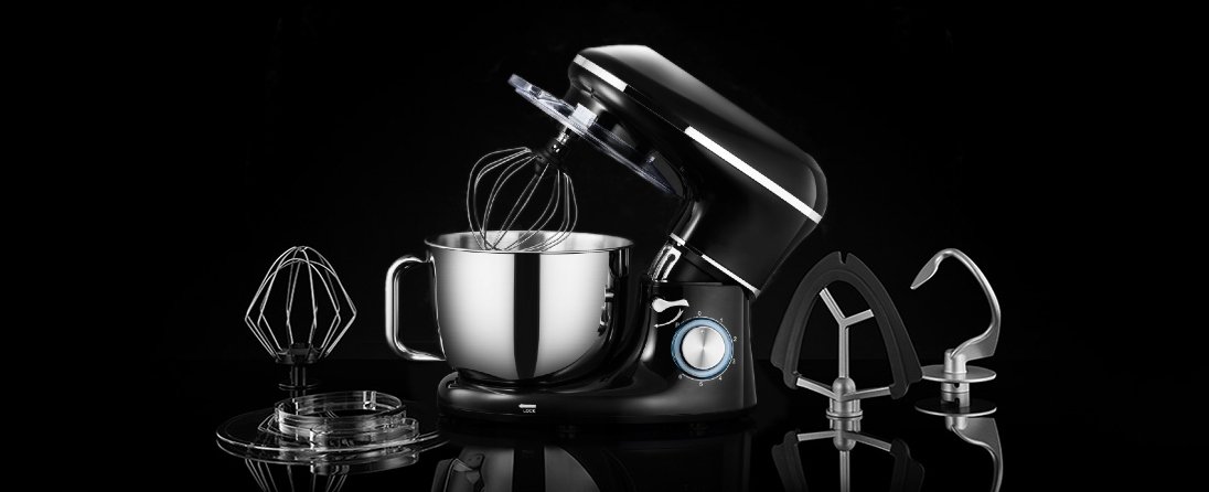 ✅Mikser został wyposażony w 3 akcesoria takie jak: hak do ciasta z powłoką nieprzywierającą, ubijak z powłoką nieprzywierającą oraz trzepaczka ze stali nierdzewnej.