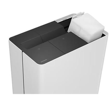 - Automatyczne suszenie nakładek mopujących z dezynfekcją parową, automatyczne opróżnianie w stacji kurzu i brudnej wody oraz uzupełnianie wody
