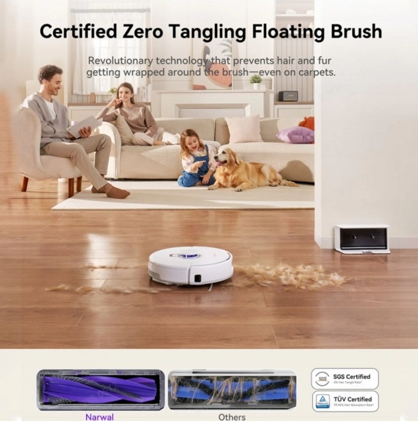 ✅Idealnie nadający się dla właścicieli zwierząt Narwal Freo X Plus posiada szczotkę nieplączącą z certyfikatami SGS i TUV, która z łatwością usuwa 99% włosów z dywanów poprzez strukturalny design szczotki głównej w połączeniu z mocą ssącą, aby osiągać 0 splątań, zapewniając nieplączące sprzątanie każdej podłogi.