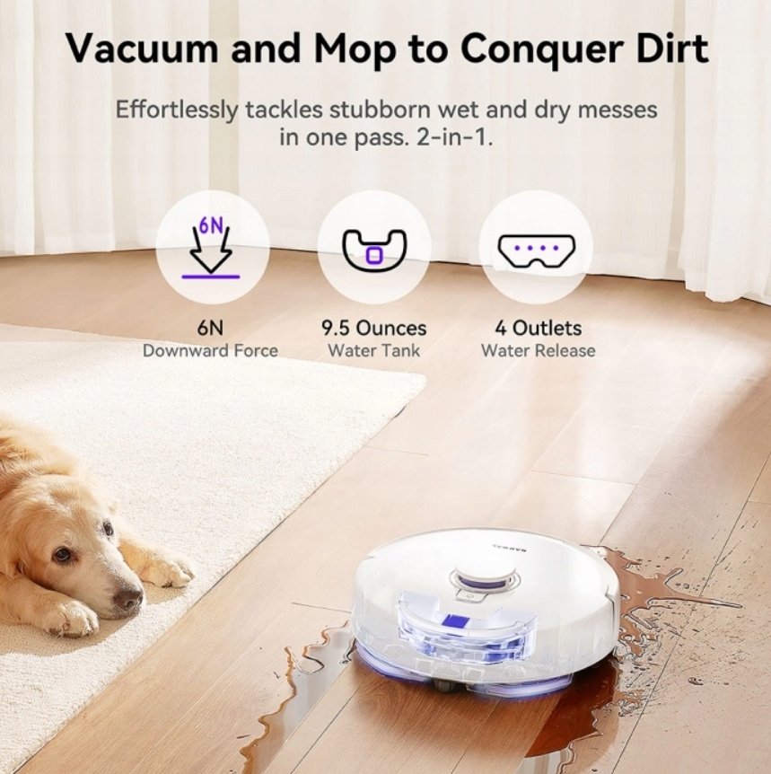 Narwal Freo X Plus dysponuje mopem z ciśnieniem spadkowym 6N, w przeciwieństwie do wielu innych zwykłych mopów na rynku, które tylko szorują podłogę, oferuje ciśnienie spadkowe 6N podczas zmywania dla głębokiego czyszczenia uporczywych plam.