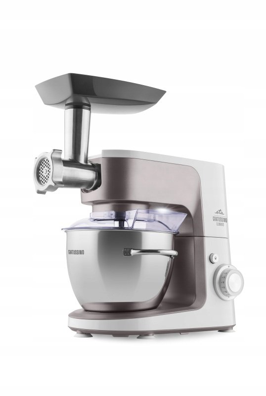 Chociaż robot kuchenny ETA Gratussino III Elements jest nieco mniejszy od swoich większych braci, nie można go uznać za słabszego. Mocny, cichy silnik o mocy 1200 W z metalowymi kołami zębatymi zapewnia długą żywotność i stabilną pracę. Planetarny system mieszania równomiernie rozdrabnia wszystkie składniki w 4,5-litrowej misie ze stali nierdzewnej , wyposażonej w praktyczne uchwyty i przezroczystą pokrywę .