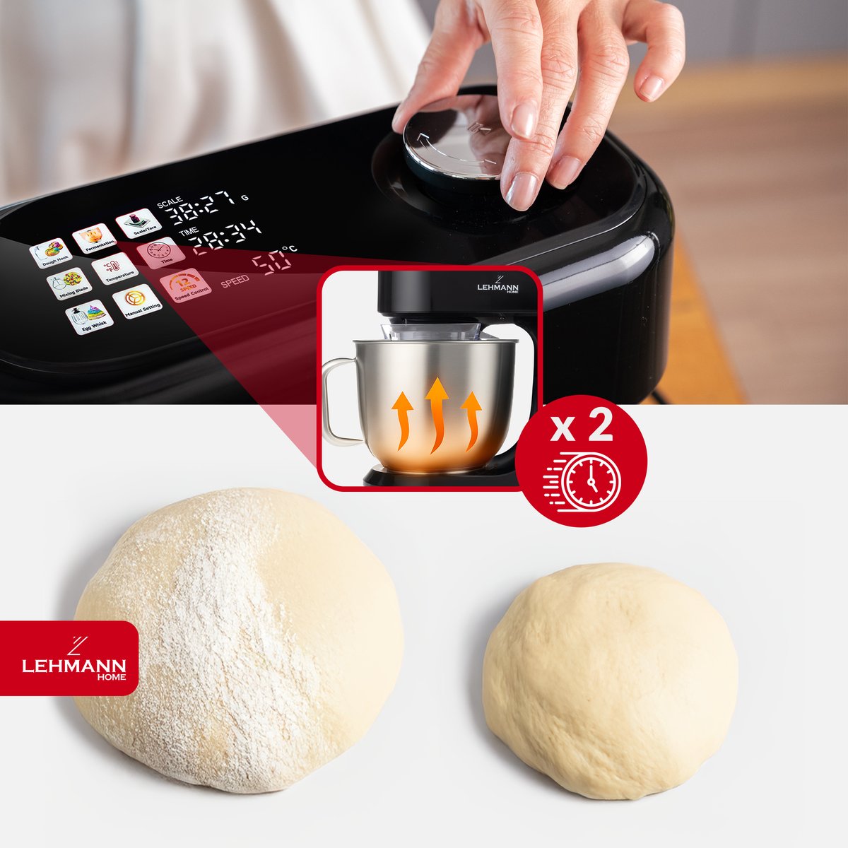 ✅ Funkcja fermentacji z podgrzewaniem do 45°C – idealna do ciasta drożdżowego i pieczywa.