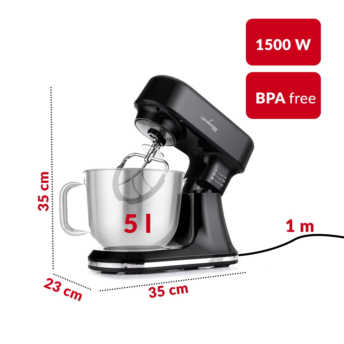 Poznaj wyjątkowy robot planetarny LEHMANN Aristo LHOPM-1505B – niezastąpiony pomocnik w każdej kuchni! Dzięki mocy 1500W z łatwością poradzi sobie nawet z najcięższym ciastem. Nowoczesna wersja w eleganckim czarnym kolorze doskonale wpisuje się w aktualne trendy aranżacyjne.