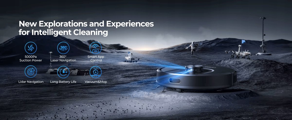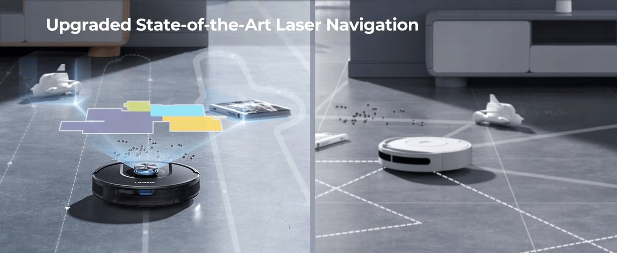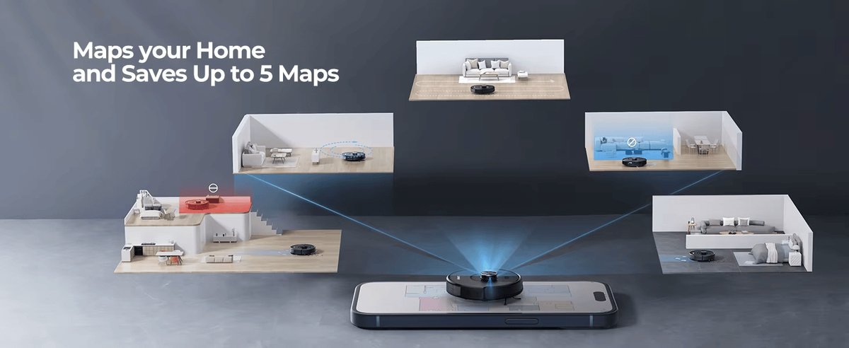 ✅ Nawigacja LDS + mapowanie – robot tworzy dokładną mapę pomieszczeń i planuje optymalną trasę sprzątania. Unika przeszkód i nie spada ze schodów.