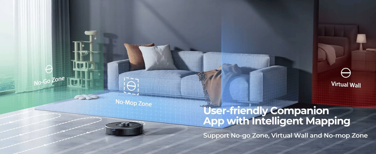 ✅ Zarządzanie z aplikacji – pełna kontrola z poziomu telefonu. Ustawisz harmonogram sprzątania, wyznaczysz strefy zakazane lub konkretne punkty do posprzątania. Kompatybilny z Alexa i Google Home – sterowanie również głosowe!