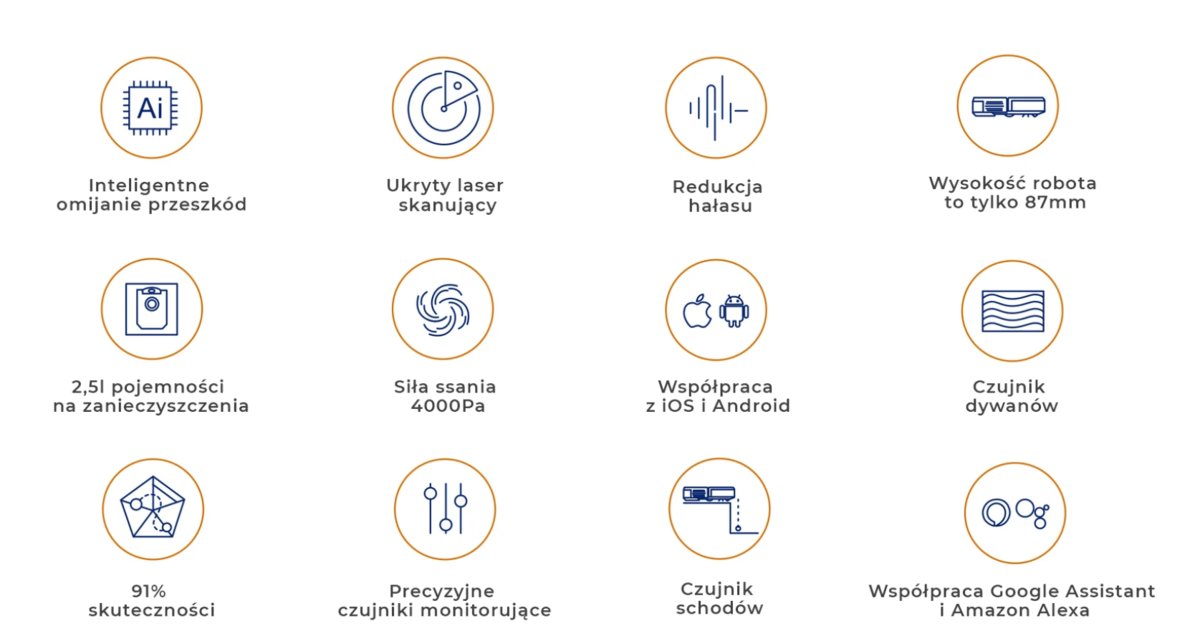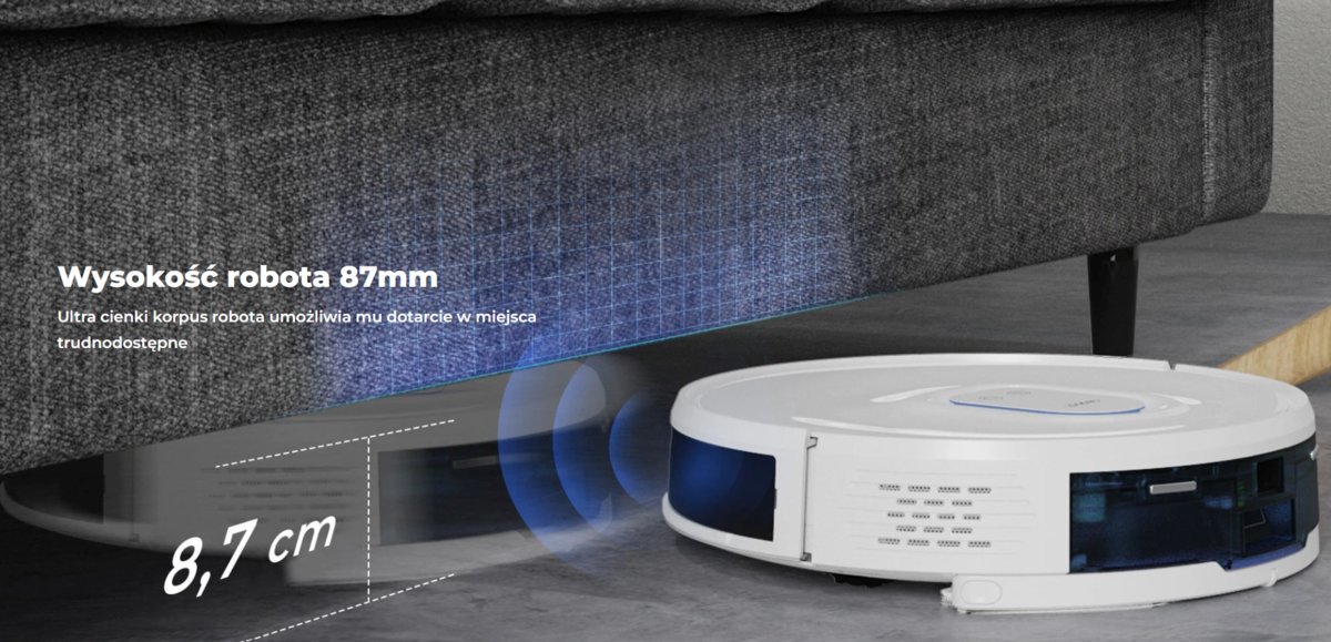 to inteligentny odkurzacz robot, który zapewni czystość i świeżość Twojego domu. Dzięki zaawansowanym funkcjom sprzątania, w tym technologii mapowania pomieszczenia, skutecznie zbiera kurz, sierść zwierząt i inne zanieczyszczenia.