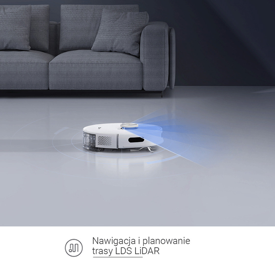 Nasz robot sprzątający znacząco ułatwi utrzymywanie porządku w każdym domu. Jego moc ssania 4000 Pa jest wystarczająca, aby dokładnie odkurzyć podłogi i jednocześnie je pozmywać. Robot RE5 inteligentnie porusza się po pomieszczeniach, sprytnie omijając wszelkie przeszkody poprzez wykorzystanie nowoczesnej technologii LDS LiDAR oraz czujników podczerwieni. Dzięki temu samodzielnie dopasowuje zaprogramowane trasy sprzątania do zmian układu pomieszczeń i panujących warunków. A jego niewielkie wymiary i doskonałe wzornictwo sprawiają, że wkomponuje się on w wystrój każdego domu