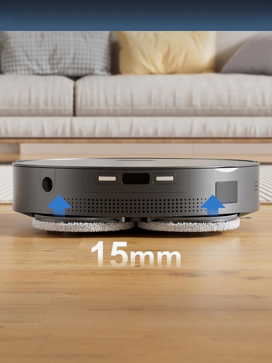 Co więcej, automatycznie podnoszą się o 15 mm, gdy robot wjedzie na dywan, chroniąc go przed zamoczeniem.