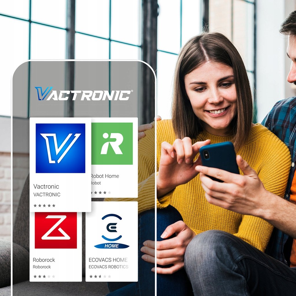 Dedykowana aplikacja Vactronic umożliwia sterowanie robotem. Jednym dotknięciem można uruchomić bądź zatrzymać urządzenie, zmienić moc ssania, ustalić kilka harmonogramów czyszczenia, a także sprawdzić, gdzie już zostało odkurzone. Możesz także ustalić pory, w których nie chcesz aby urządzenie pracowało.