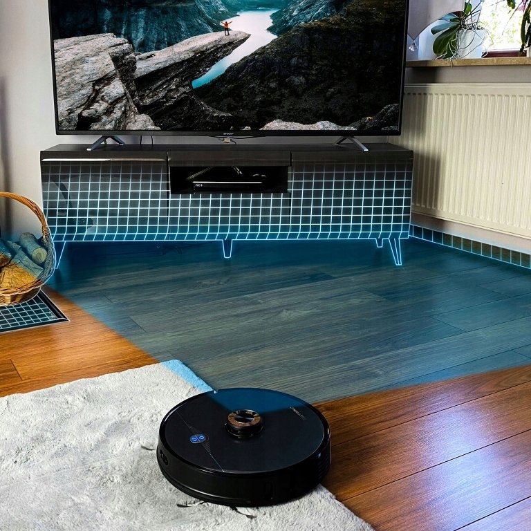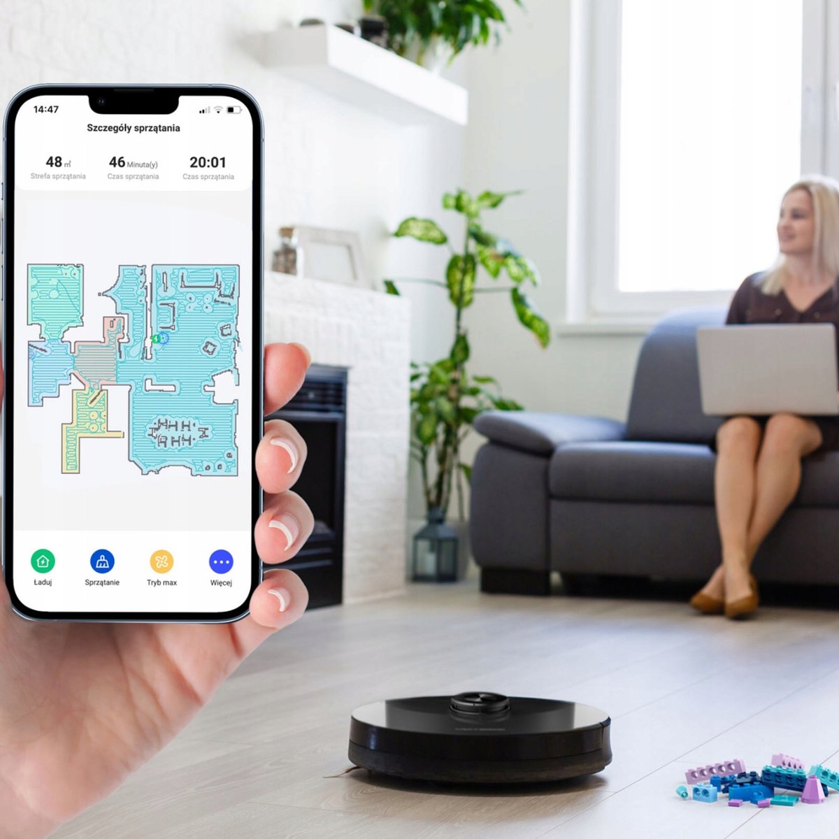 Dzięki zaawansowanej nawigacji laserowej z algorytmem SLAM robot aktywnie skanuje pomieszczenie tworząc mapę w aplikacji mobilnej. Dzięki temu robot może ominąć zaznaczone przedmioty, co przekłada się na większą dokładność i szybsze sprzątanie.